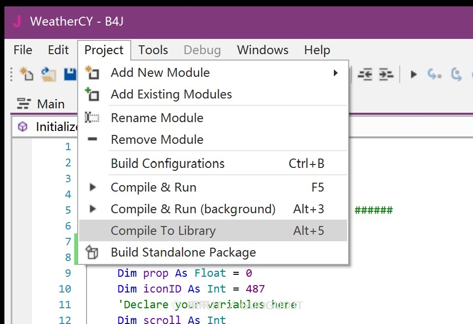 打开B4J,文件> 打开项目